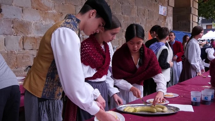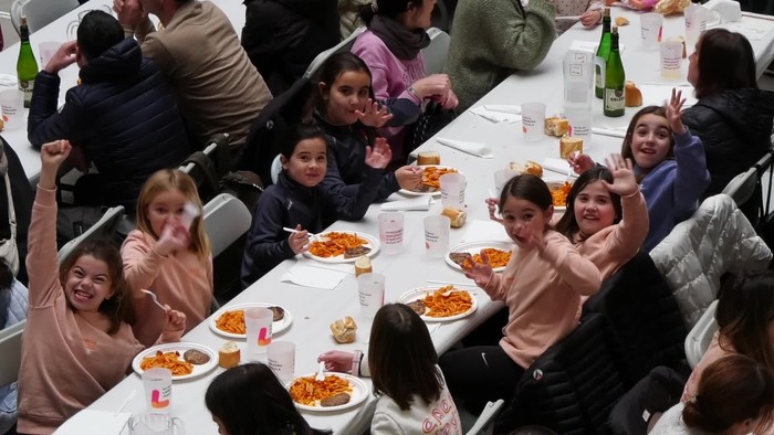 Auzolanean prestatu zuten bazkaria Lazkaoko Ikastolan.
