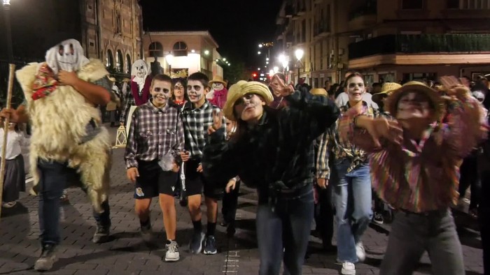 Mozorroak, sua, gaztainak eta musika izan ziren herriko kaleetan zehar.
