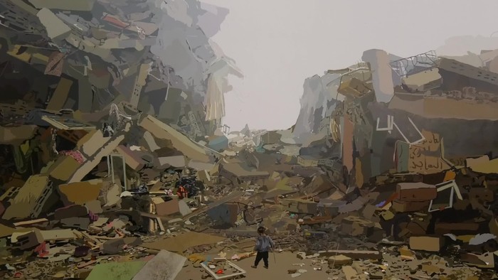 Gazan eraildakoen izenak gogoratu zituzten eta murala osatu zuten.