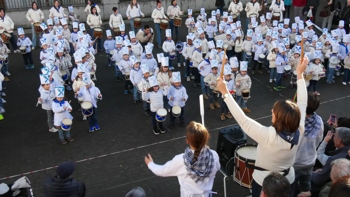 La Salleko ikasleek gogoz astindu dituzte danborrak adi begira zituzten senitartekoen aurrean.