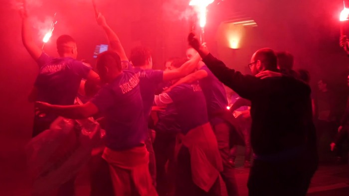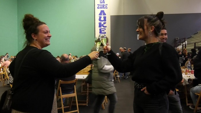 Eguraldi txarrari aurre egin zioten eta kalera irten ziren ospatzera.