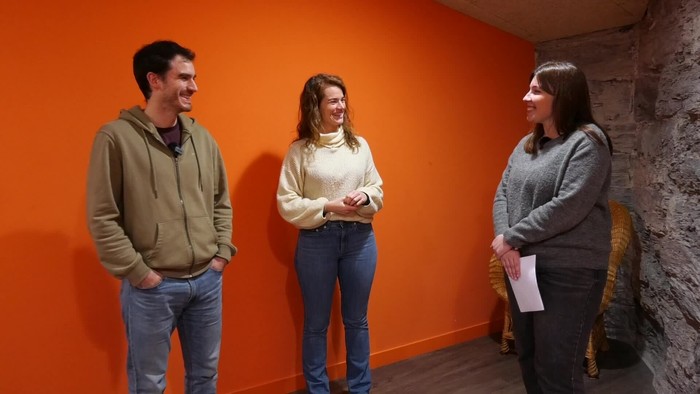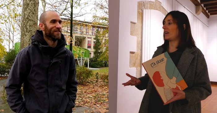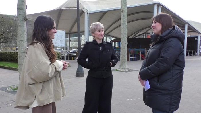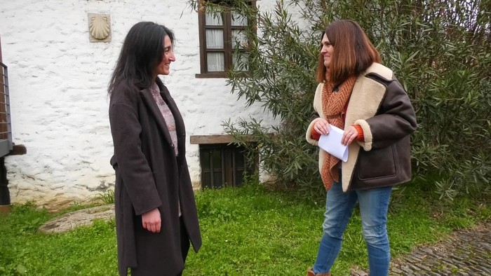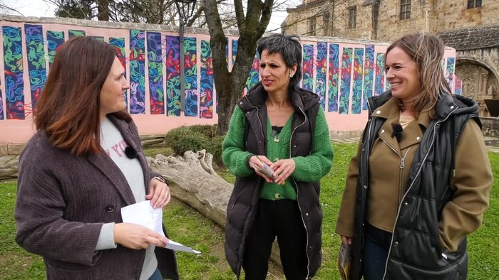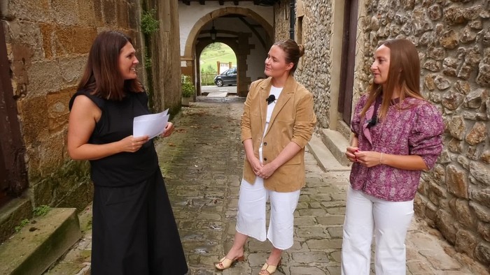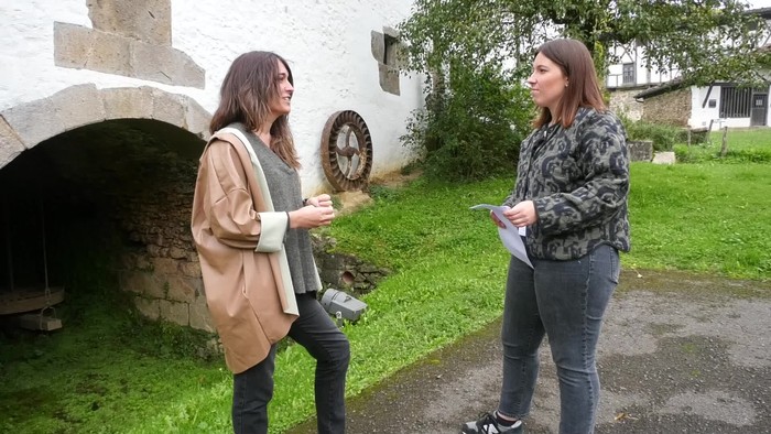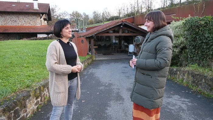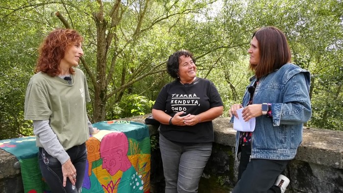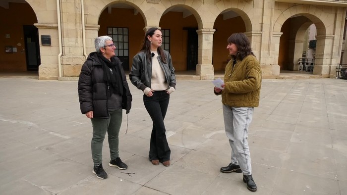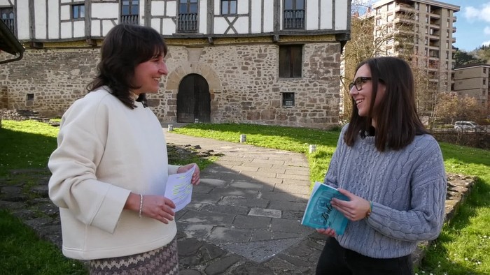 Seguran ospatzen ari den Iparra Hegoa hizpide, antolakuntzako kide diren Idoia Telleria eta Euri Albizurekin.